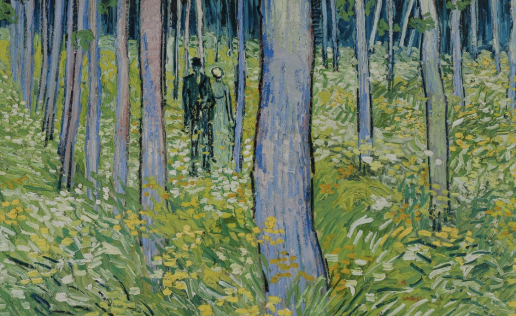 Illustration : « Sous-bois avec deux figures » par Vincent Van Gogh en juin 1890